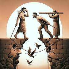 Anuo metu Jėzus pasakė mokiniams palyginimą: „Ar gali aklas vesti aklą? Argi ne abu įkris į duobę?! Mokinys nėra viršesnis už mokytoją: kiekvienas mokinys bus gerai išlavintas, jei bus kaip mokytojas. Kodėl gi matai krislą savo brolio akyje, o nepastebi rąsto savojoje?! Ir kaip gali sakyti broliui: ‘Broli, leisk, išimsiu krislą iš tavo akies’, pats nematydamas savo akyje rąsto?! Veidmainy, pirmiau išritink rąstą iš savo akies, o tada pažiūrėsi, kaip iš brolio akies išimti krislelį. Nėra gero medžio, kuris megztų blogus vaisius, nei vėl – netikusio, kuris megztų gerus vaisius. Kiekvienas medis pažįstamas iš vaisių. Nuo usnių niekas nerenka figų, o nuo erškėčio neskina vynuogių. Geras žmogus iš gero savo širdies lobyno ima gera, o blogasis iš blogo lobyno ima bloga. Jo burna kalba tai, ko pertekusi širdis.“